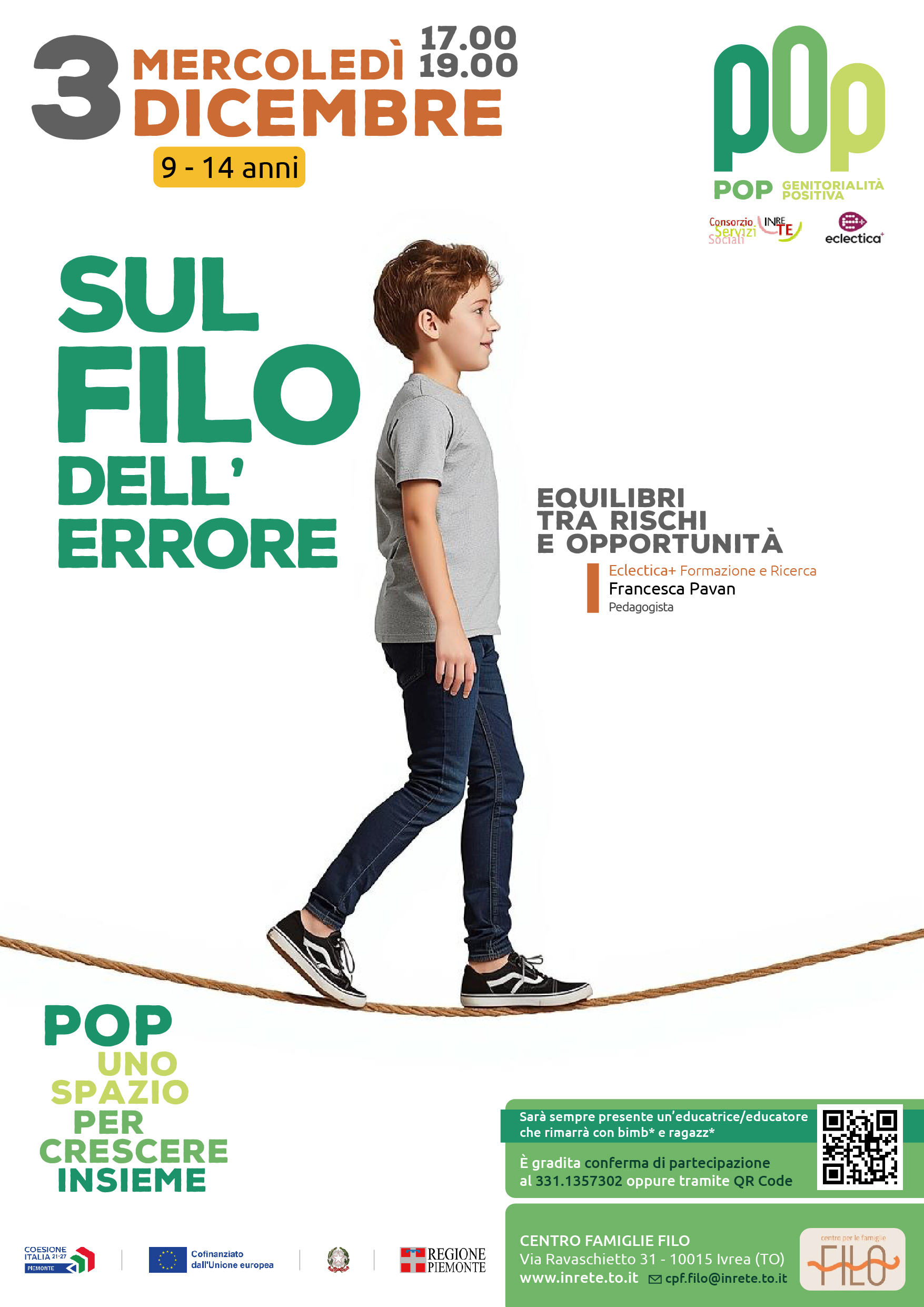 Mercoledì 3 dicembre dalle 17 alle 19 "Sul filo dell'errore. Equilibri tra rischi e opportunità"