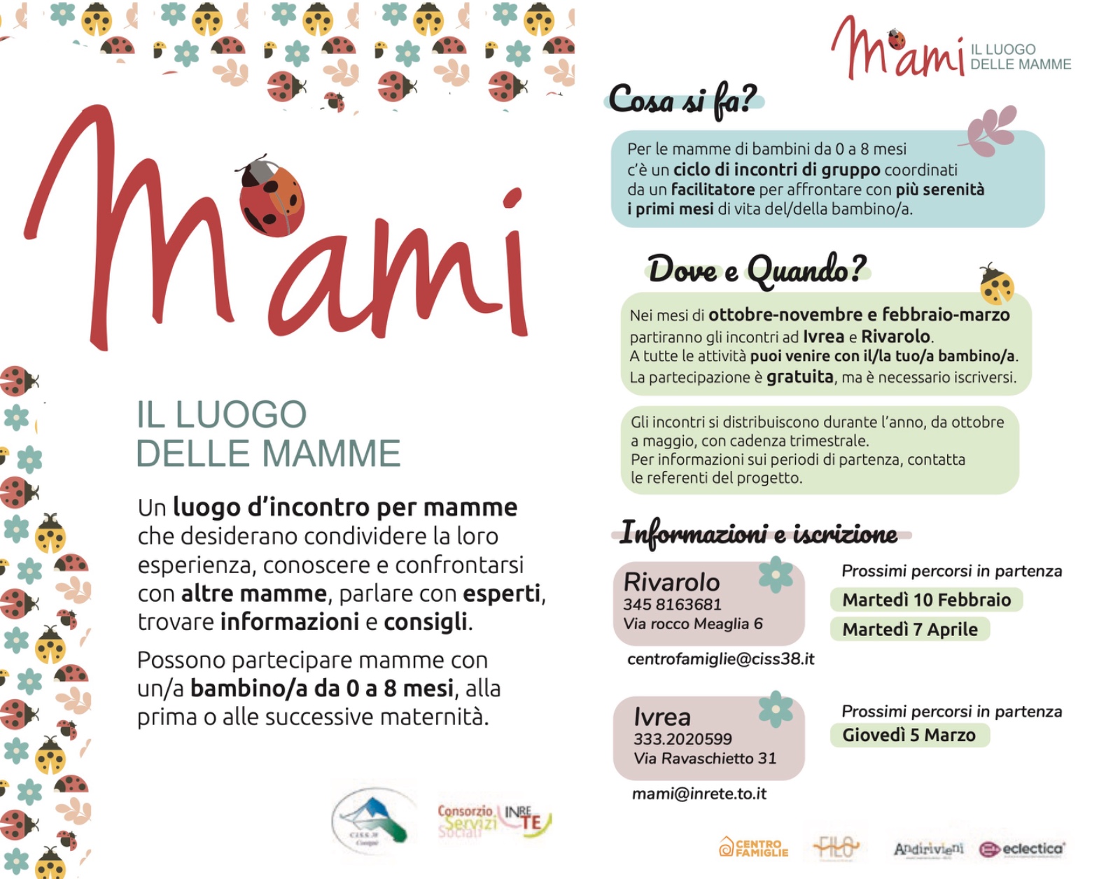 Tali incontri, in collaborazione con Eclectica+, si realizzano grazie alla progettualità "Promozione della genitorialità positiva", realizzata all'interno del Programma Regionale (PR) Fondo Sociale Europeo Plus (FSE+) 2021-2027 della Regione Piemonte.