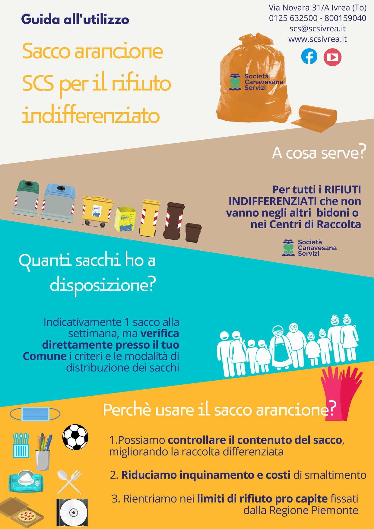 - la "Guida all'utilizzo" del sacchetto arancione (rifiuti indifferenziati);