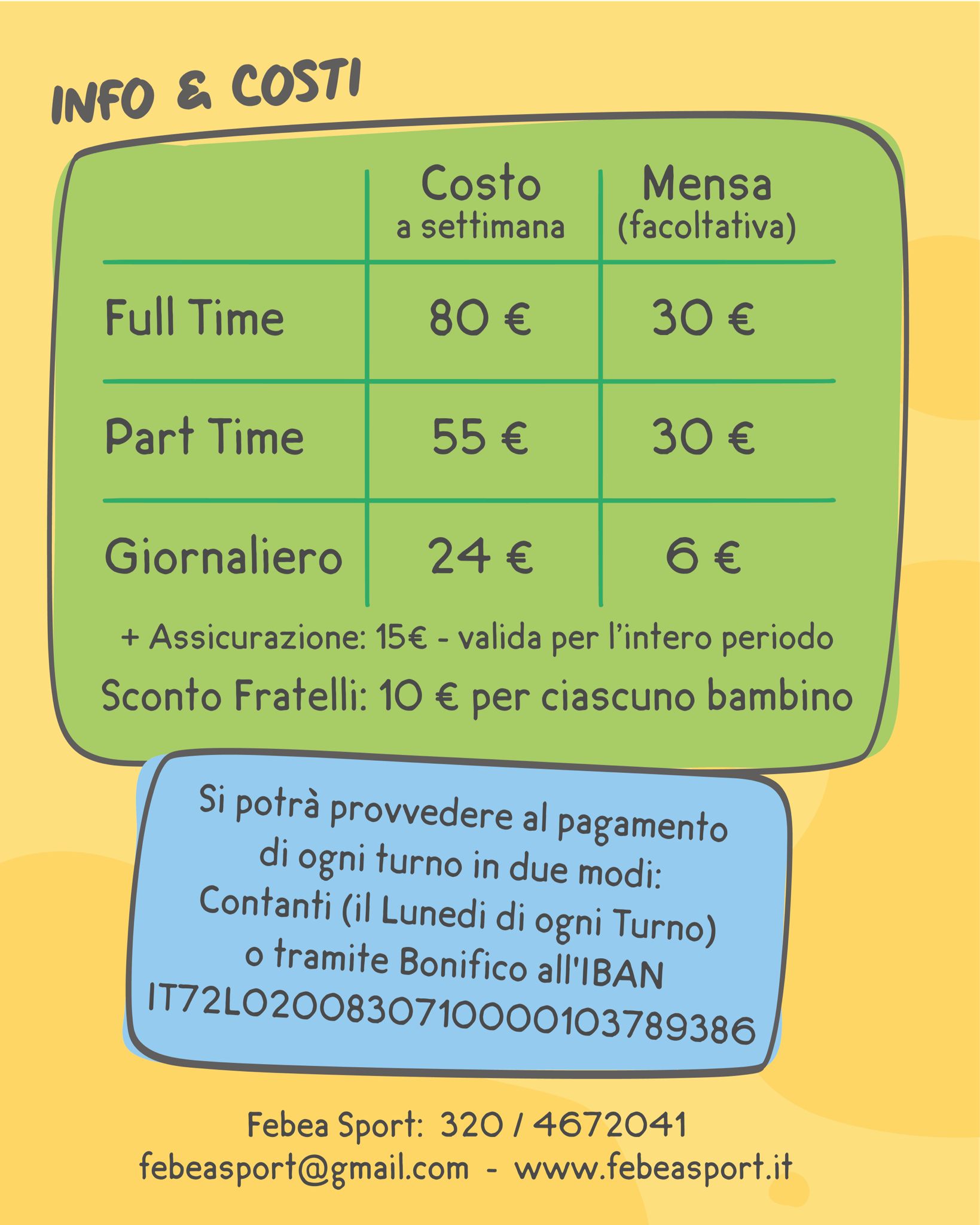 Per informazioni ed iscrizioni si può visitare sito internet www.febeasport.it e scrivere alla mail febeasport@gmail.com oppure chiamare il numero 320-46.72.041.