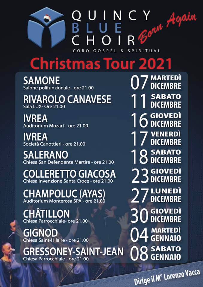 Si allega la locandina del "Christmas tour 2021" del Quincy Blue Choir.