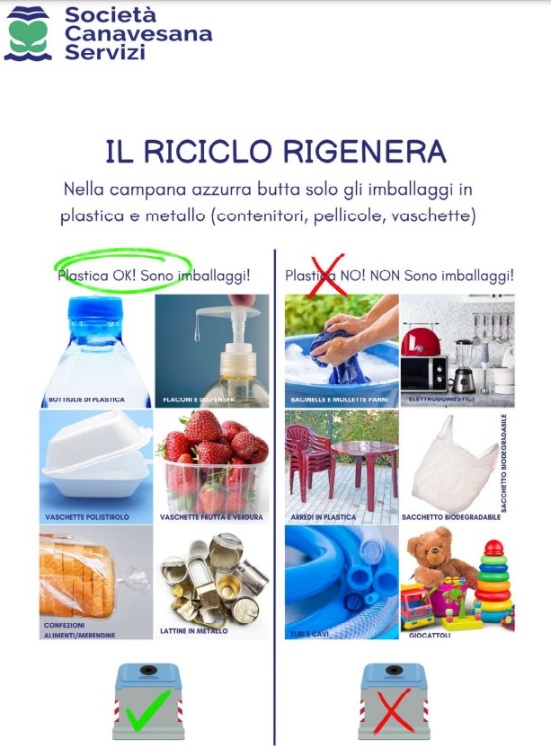 La Società Canavesana Servizi (SCS) sta diffondendo una campagna di sensibilizzazione sulla raccolta differenziata degli imballaggi in plastica e metallo.