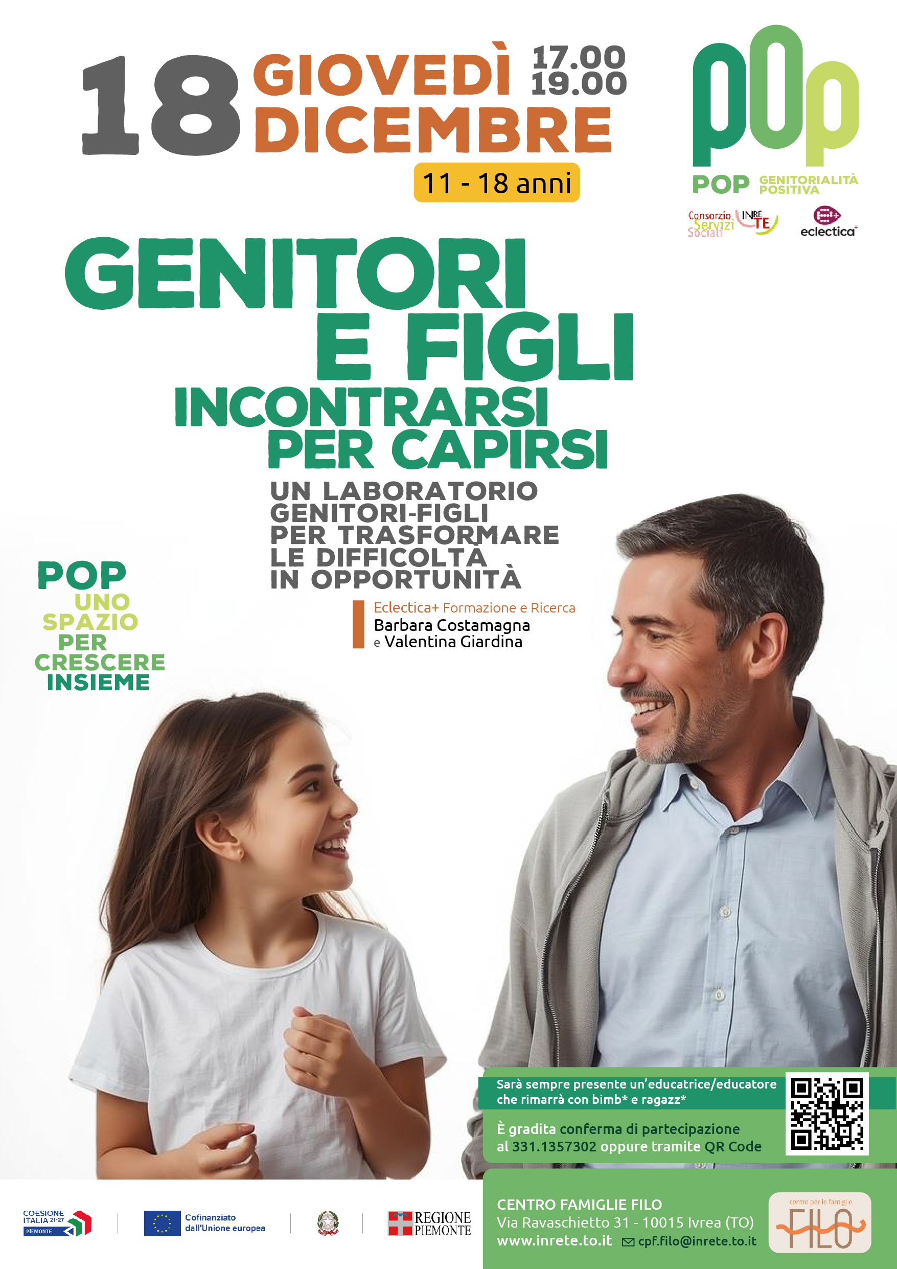 giovedì 18 dicembre "Genitori e figli. Incontrarsi per capirsi. Un laboratorio genitori-figli per