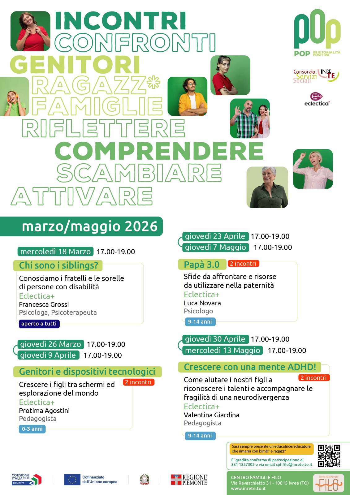 Tali incontri, in collaborazione con Eclectica+, si realizzano grazie alla progettualità "Promozione della genitorialità positiva", realizzata all'interno del Programma Regionale (PR) Fondo Sociale Europeo Plus (FSE+) 2021-2027 della Regione Piemonte.